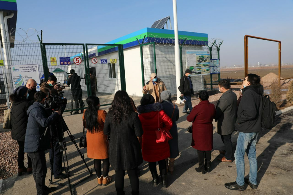 В рамках пресс-тура журналисты могут ознакомится с мощностью и возможностями газораспределительной станции «Ўртасарой», которая поставляет природный газ потребителям города Нурафшан, Ташкентской области.